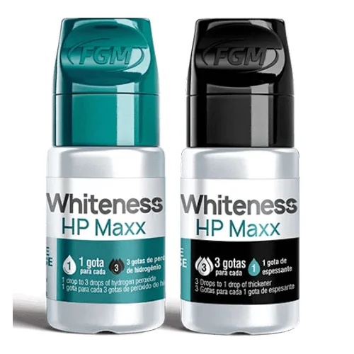 بلیچینگ آفیس FGM مدل Whiteness HP Maxx 35% محصولی حرفه ای برای سفید کردن دندان ها در محیط مطب است. این کیت حاوی هیدروژن پراکساید 35٪ با غلظت بالا بوده و به دلیل سیستم سلف کاتالیز، بدون نیاز به نور یا حرارت اضافی عمل می کند. فرمول دو فازی این محصول شامل پراکساید و ضخیم‌کننده است که استفاده از آن را آسان و مؤثر می سازد و از هدر رفتن مواد جلوگیری می کند. برای مشاهده محصولات مشابه می توانید از دسته بندی ابزار مصرفی دندانپزشکی در وب سایت ناجی دنتال دیدن کنید.