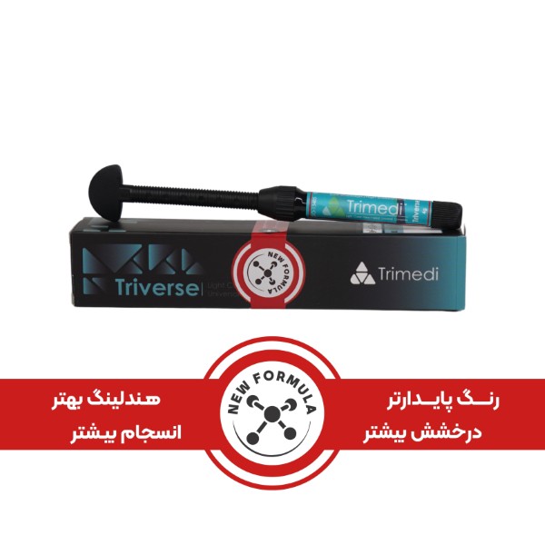 کامپوزیت نانوهیبرید یونیورسال شکل‌پذیر ترایورس Triverse یکی از محصولات پیشرفته و حرفه ای برای ترمیم های دندانی است که ترکیبی از شکل پذیری بالا، استحکام و زیبایی طبیعی را ارائه می دهد. این کامپوزیت نانوهیبرید با طراحی منحصر به فرد خود، امکان فرم دهی دقیق و هماهنگ با آناتومی دندان را فراهم می کند و برای ترمیم های یونیورسال و لایه های مختلف دندانی مناسب است.