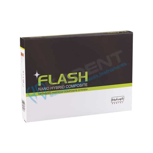 کیت کامپوزیت نانو هیبرید Medicept – Flash Kit یکی از جامع‌ترین و کاربردی‌ترین ست‌های ترمیمی در دندانپزشکی مدرن است. این کیت شامل چندین رنگ از کامپوزیت Flash می‌باشد که با تکنولوژی نانو هیبرید ساخته شده‌اند و امکان ترمیم دندان‌ها با رنگ و درخشندگی طبیعی را فراهم می‌کنند. ساختار نانو هیبرید این محصول باعث افزایش استحکام، مقاومت در برابر سایش و دوام طولانی‌مدت ترمیم می‌شود.